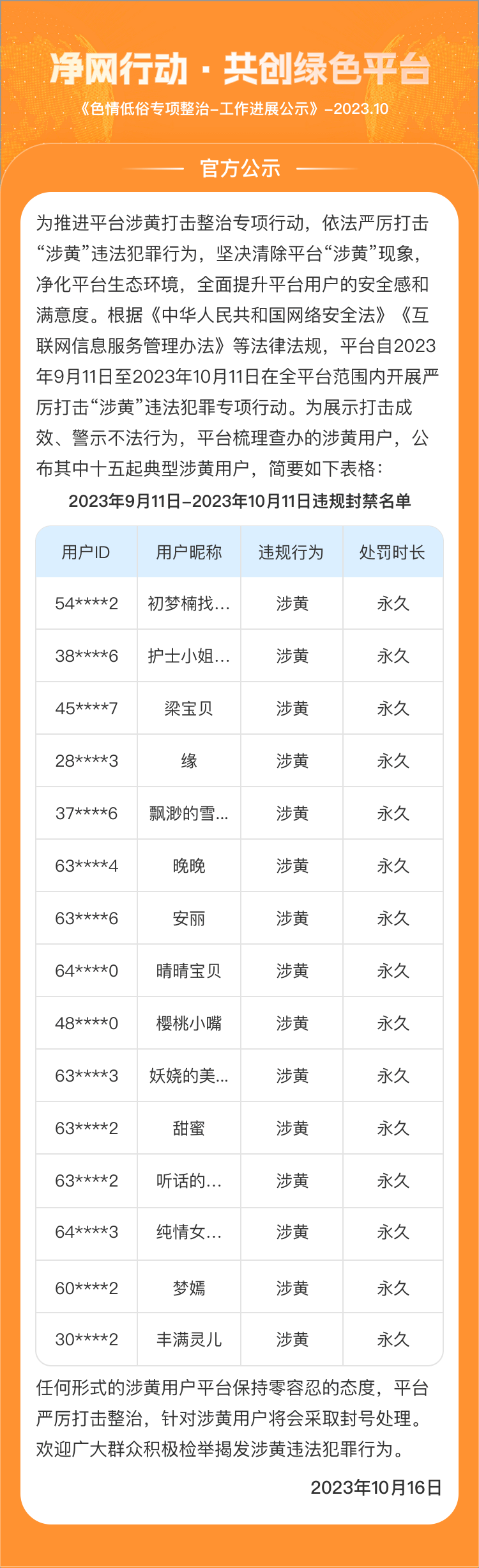 10月-色情低俗专项整治-工作进展公示