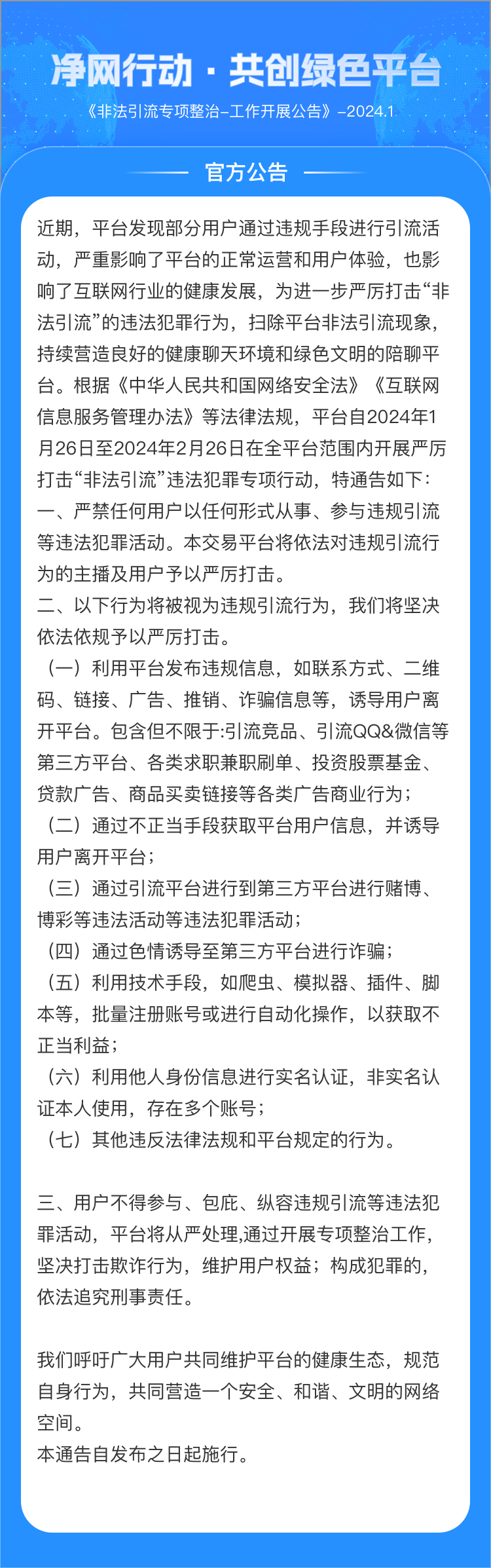 1月-非法引流专项整治-工作开展公告